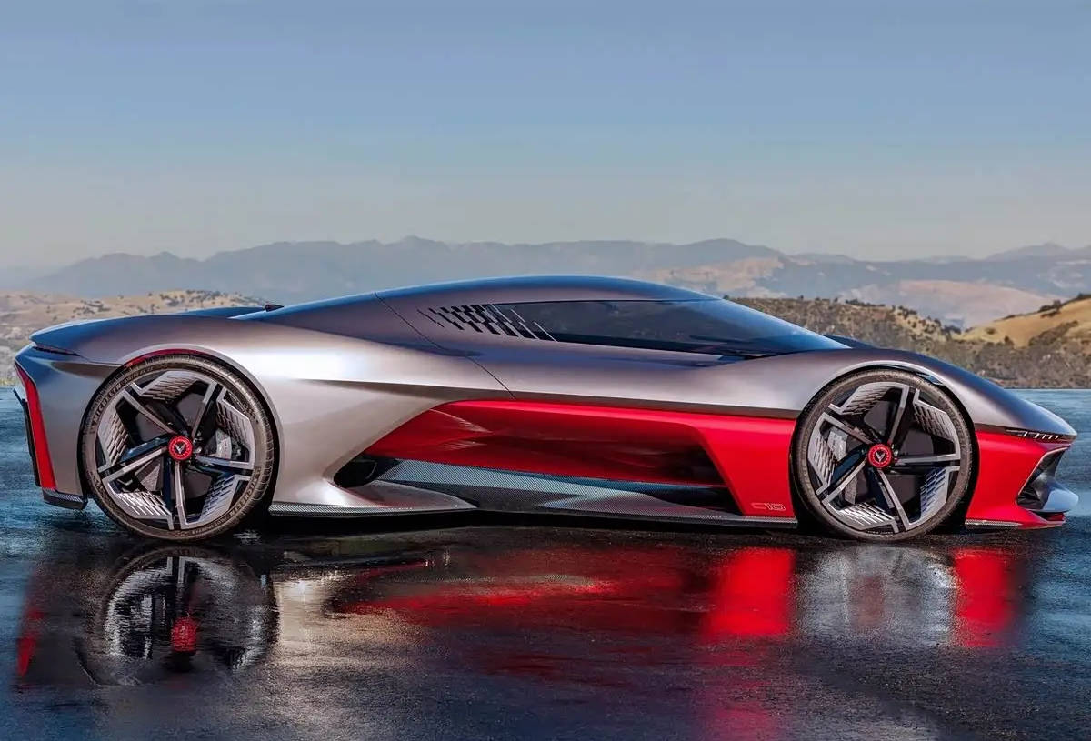 新车的整个车身结构采用的是带有轻质碳桶的隧道底盘,全车都配备了主动空气扰流板和空气制动器,前21英寸后22英寸的轮圈也将视觉张力拉满。值得一提的是,新车还将会配备T形棱镜电池组,实现低座位和更好的气流围绕和通过底盘。车身尺寸上,这款纯电动跑车长宽高分别为4669/2184/1051mm,轴距为2767mm,宽大的车身与四轮四角的设计,让车辆拥有极低的重心。