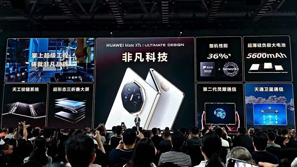 在大家最关心的芯片性能方面,余承东重磅宣布华为Mate XTs搭载了最新麒麟9020芯片,系统为鸿蒙5,可以说从软硬芯云各方面完成了全面自研。在自研芯片和系统的加持下,三折叠整机性能据称提升了36%。