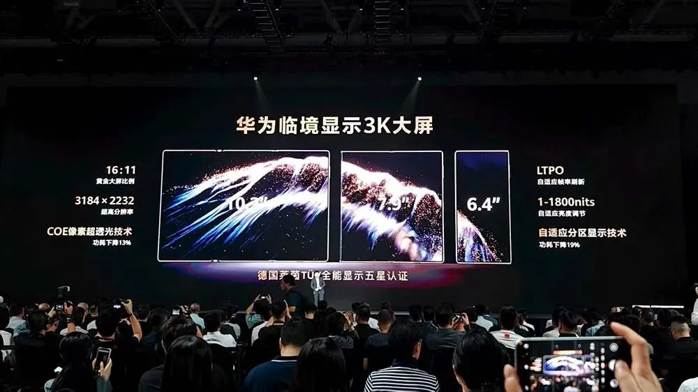 华为Mate XTs搭载了一块3K的大内屏,其采用了新的COE像素透光技术,让屏幕功耗下降了13%。