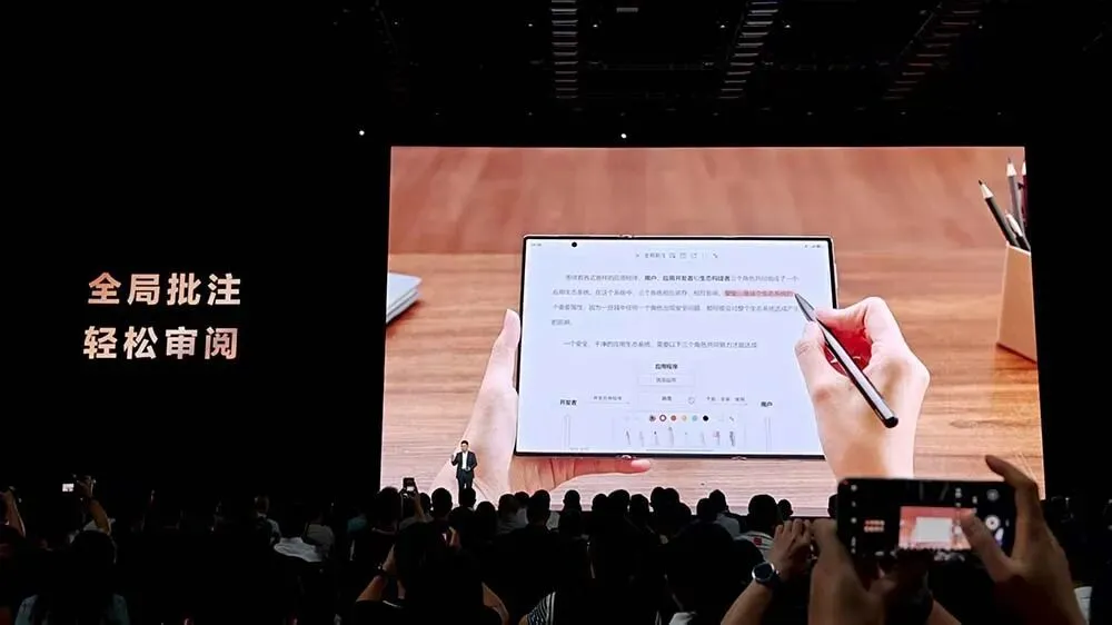 这次华为把众多PC上的软件都搬到了折叠屏上,进一步提升折叠屏的生产力,华为还给三折叠配备了一只支持隔空操控的手写笔。
