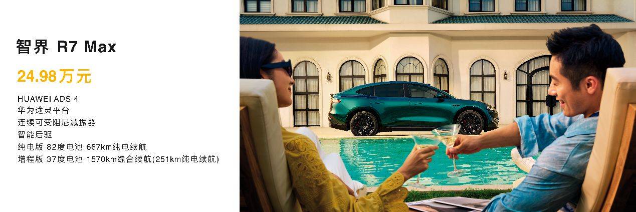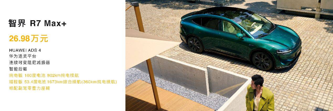 新款智界R7 Max+版售价26.98万元,较Max版高出2万元,主要升级在,纯电版换装100度电池,续航802km。而增程版本电池扩容至53.4度,纯电续航达360Km,进一步缓解里程焦虑。此外,Max+版副驾零重力座椅极大提升了乘坐舒适性与豪华体验。若您经常长途出行,或副驾常陪伴家人,Max+版的续航提升与舒适享受,显然而见尤为超值。