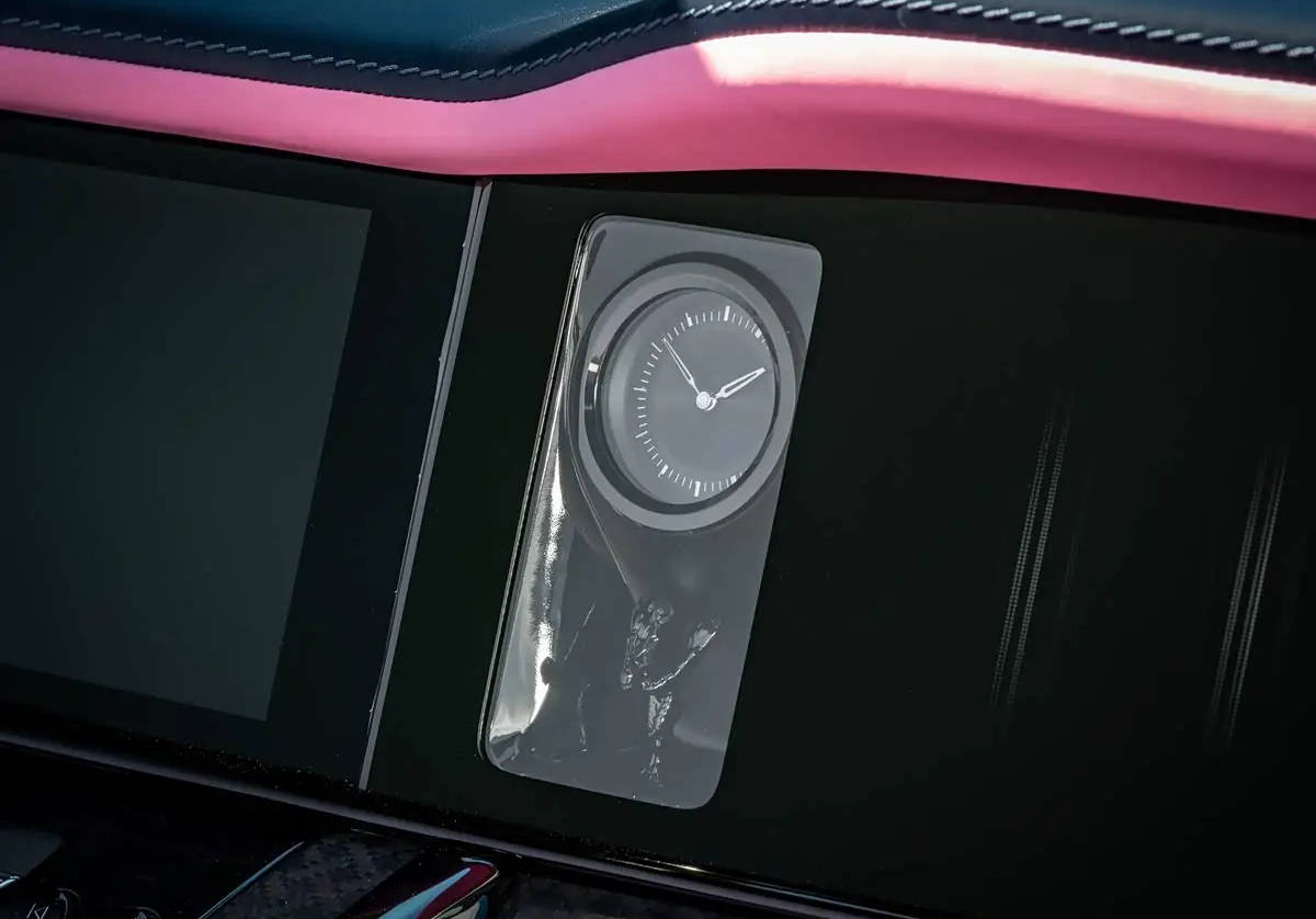 库里南Black Badge采用了“丹骞粉”色调,23英寸黑徽章锻造轮圈中心也使用了这一颜色。车身C柱和车线上的“丝绸之魂”图案呈现黑色。前排座椅采用“腮红粉”皮革,配以特殊打孔设计,灵感来源于劳斯莱斯总部古德伍德上空的云朵变幻。