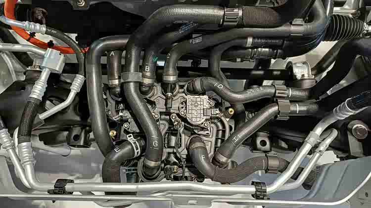 同时从散热到线缆也进行了全方位优化,比如每个电池模块的上下方都粘贴了冷却板,形成 “双向散热” 结构,可以确保整个电池包在充放电过程中始终处于最佳温度区间(通常为 25-40℃),散热风扇从散热器后方移至前方,这一看似简单的调整,但这背后需要对风扇叶片角度、气流导向等进行数百次模拟与优化让,才使得风扇效率提升了15%。同时车辆直流充电口也采用了刚性高压线缆,这种设计能减少充电时的热损耗,可以进一步提升充电效率。此外,在Turbo车型版本中,后桥电机采用油冷设计 ,这不仅保证了车辆在激烈驾驶时的高功率输出,还让车辆的制动能量回收功率达到600千瓦,远超Taycan的400千瓦,可以让车辆能从制动过程中回收更多电能,间接提升实际续航里程。