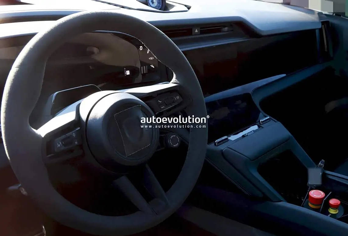 车尾部分,新车配备了大尺寸的可电动伸缩的后扰流板,并配置了格尼襟翼。尾灯组造型预计依旧是贯穿式设计,其光源面积有所增加。新车的后包围被设计成了分层式的结构,两侧配备了纵向布局的通风口装饰,同时还配备了尾部扩散器装饰面板,整体尾部造型较厚,但是经过多层结构布局,在视觉上并不那么臃肿。