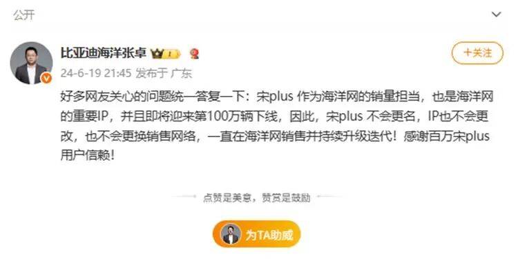 不过,对于比亚迪而言,宋plus一直有一个序列上的问题。由于历史原因,该车尽管在名称上属于王朝序列,但是该车在比亚迪的海洋网中销售。在自主品牌中,比亚迪分网销售的模式,最开始分为王朝和 e网,e网的产品竞争力不强,因此渠道比较困难,为了保证渠道当时把宋Plus分到了海洋网。但这带来的问题是消费者无法区分,很多想买宋plus的消费者跑去了王朝网,造成不小的困扰。