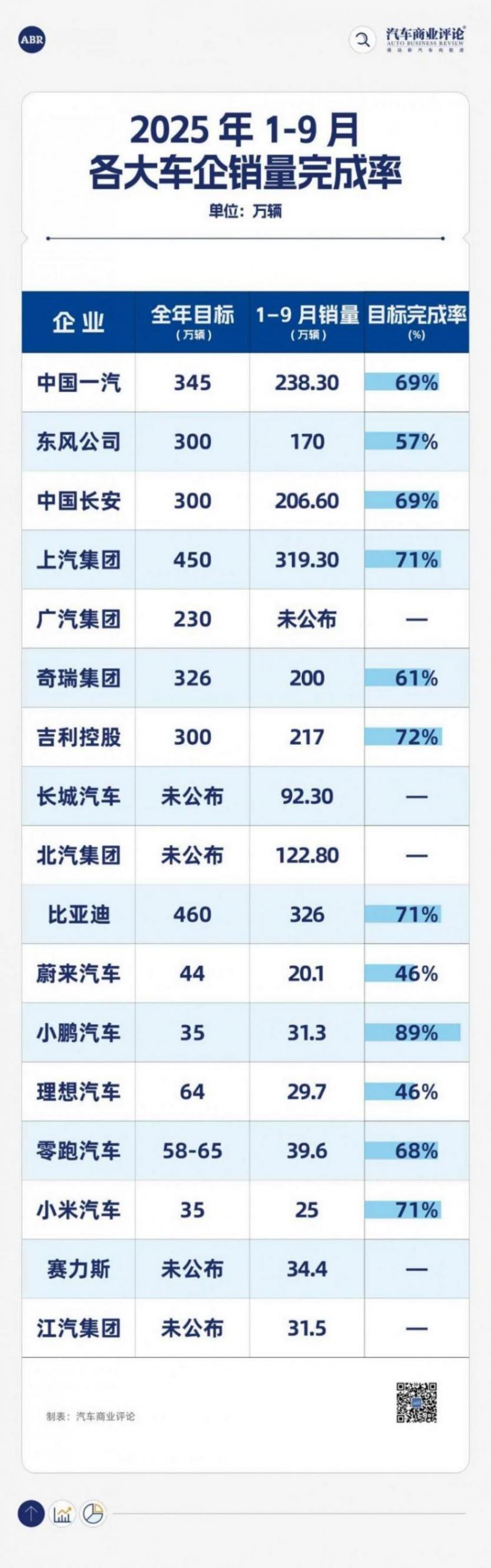 《汽车商业评论》整理了17家车企的2025年销量目标以及截至今年三季度的累计销量。当下环境,很难有企业能百分百完成既定销量目标。