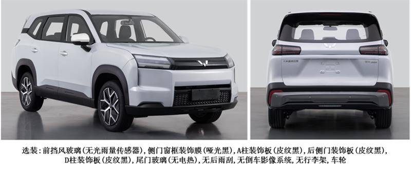 尺寸方面,根据申报信息,五菱星光560的车身三围分别为:4745/1850/1755(1770),轴距2810mm,分别提供五座和七座两种座椅布局,定位A+级新能源SUV。作为参考,五菱星光S的车身三围分别为:4745/1890/1685mm,轴距2800mm,同样定位A+级SUV。从尺寸数据上看,五菱星光560和五菱星光S应该是基于同平台打造,两款产品是主要是通过设计的不同来进行差异化的市场定位。五菱星光S走的是城市、运动化SUV的风格,五菱星光560则凸显越野、休旅气质。