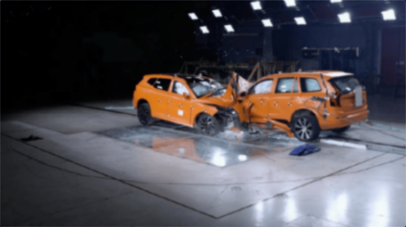 而沃尔沃做的是,在瑞典哥德堡,让一款XC70和一款XC90进行了对撞。