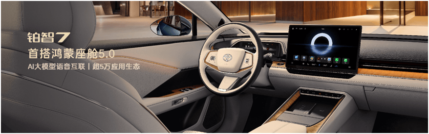 在电车——铂智7身上,看到的丰田的本土化,看到广汽丰田怎么开拓纯电新局、怎么树立“合资豪华电车”。D级纯电轿车铂智7是"中国智电技术+丰田全球技术底蕴"的融合,在发挥丰田实力的同时,整合了华为DriveONE电驱、鸿蒙座舱5.0、Momenta R6大模型智驾、小米生态等中国本土顶尖技术资源。