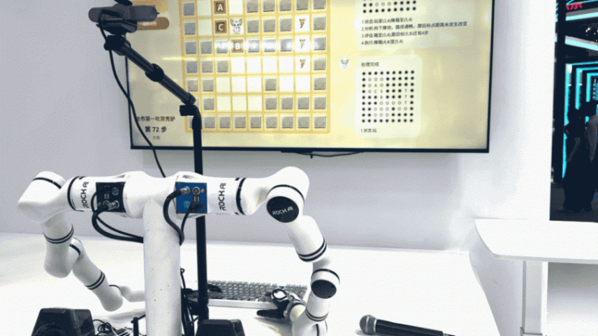 基于Yan 2.0 Preview的灵巧手可以在展台自主玩推箱子游戏,可以看到它会根据具体情况对下一步行动进行分析、评估,最终使得箱子被放置到正确的位置。