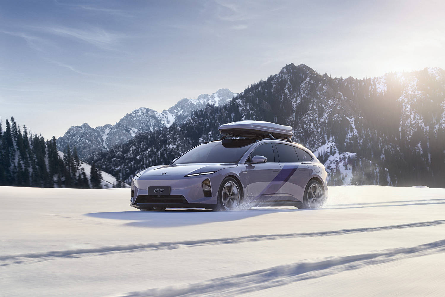 造型方面,新ET5与ET5T远空套装限定车型从新疆阿勒泰雪山日落黄昏后的“梦幻紫霞”中汲取设计灵感,以远空紫车色为基底,搭配专属主题拉花与三角窗贴纸。