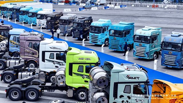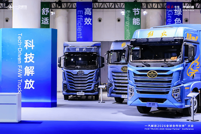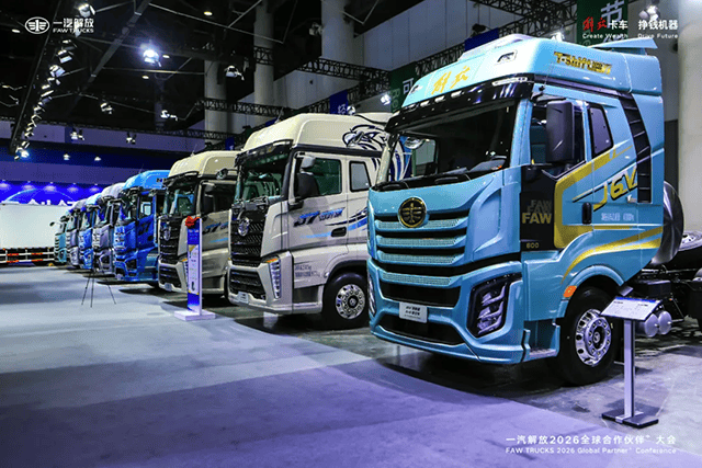 日前,一汽解放在四川成都召开了2026全球合作伙伴大会。超5000名合作伙伴齐聚蓉城,228辆覆盖中重卡、轻卡、新能源全谱系的展车集中亮相。