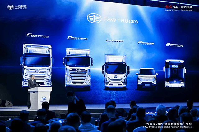 在海外客户大会上,李胜正式发布支撑FAW TRUCKS迈向全球市场的核心品牌架构——CORTRON、DORTRON、LITRON、PITRON和BOTRON五大海外产品品牌。五大品牌既相互独立,又紧密协同,共同构成FAW TRUCKS完整而立体的品牌矩阵,确保在每一个细分市场,都能为用户提供最专注的价值承诺。