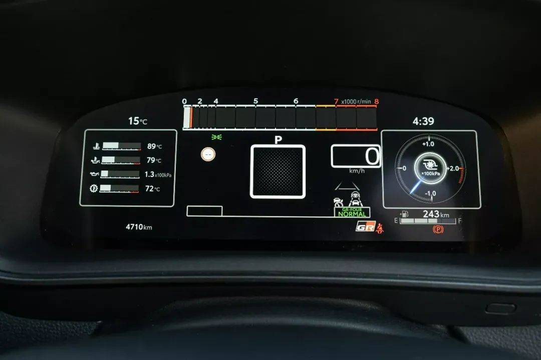 出色的全轮驱动系统让丰田最新的GR产品感觉像是一款真正的性能标杆车型。和Yaris一样,它有三种模式,可以改变动力分配比例。标准模式下是60:40, 碎石模式下是53:47,赛道模式下在60:40到30:70之间变化。