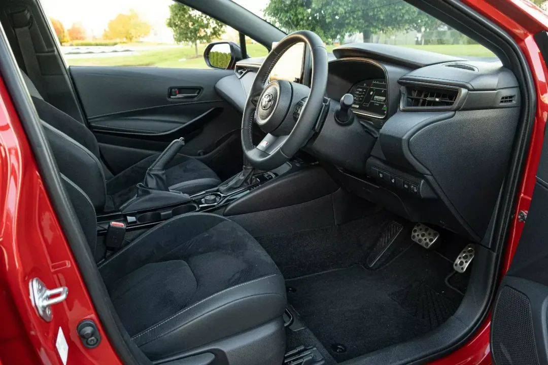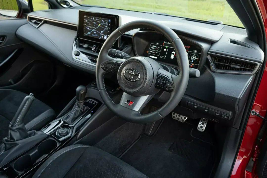 Yaris的车内几乎每一寸都是硬邦邦的黑色塑料,而GR卡罗拉在仪表盘和门板上则采用软质皮革。不过,丰田在GR Yaris的中期改款中对内饰进行了改造,但却没有对卡罗拉做同样的改动,所以它的内饰基本上和老款车一样。