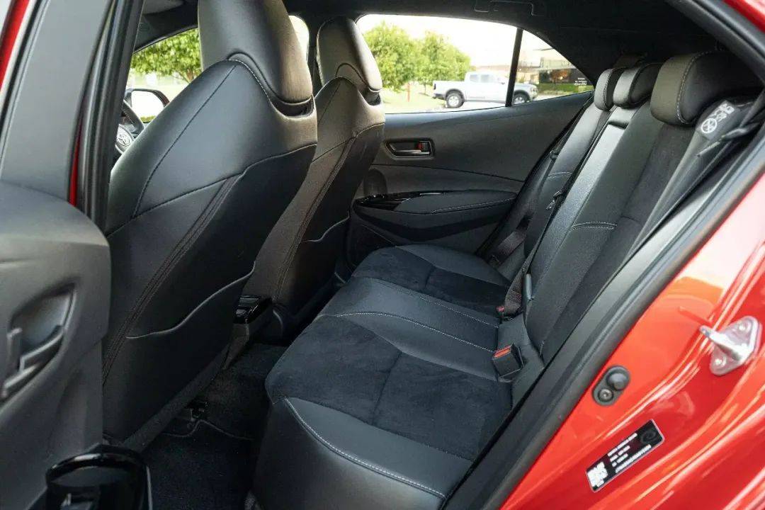 在其他方面,有和Yaris一样的皮革和Alcantara材质的GR运动座椅,还有完全相同的方向盘。但是和GR Yaris一样,该车座椅仍然太高,方向盘位置太低。在思域Type R里感觉是坐在车里,而在GR卡罗拉里,仍然感觉像是坐在车顶上。