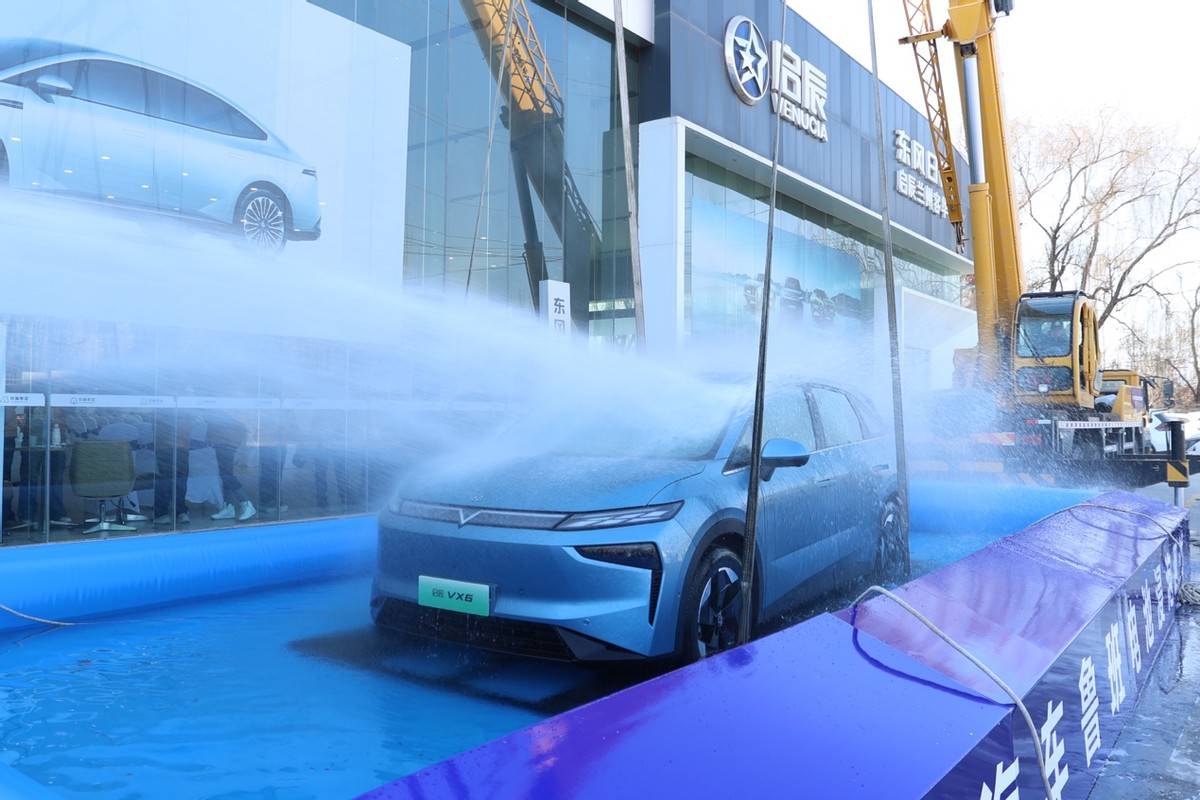 水,是黄河赋予兰州的灵魂,也意味着不同寻常的挑战。一个模拟特大涉水与暴雨冲刷场景的蓄水池,已准备就绪。启辰VX6大平层被缓缓放入,高压水枪模拟暴雨倾盆,猛烈冲刷着车窗、车门缝隙等每一处可能进水的细节。水位逐渐攀升,直至漫过底盘,最终水深达到了40cm。