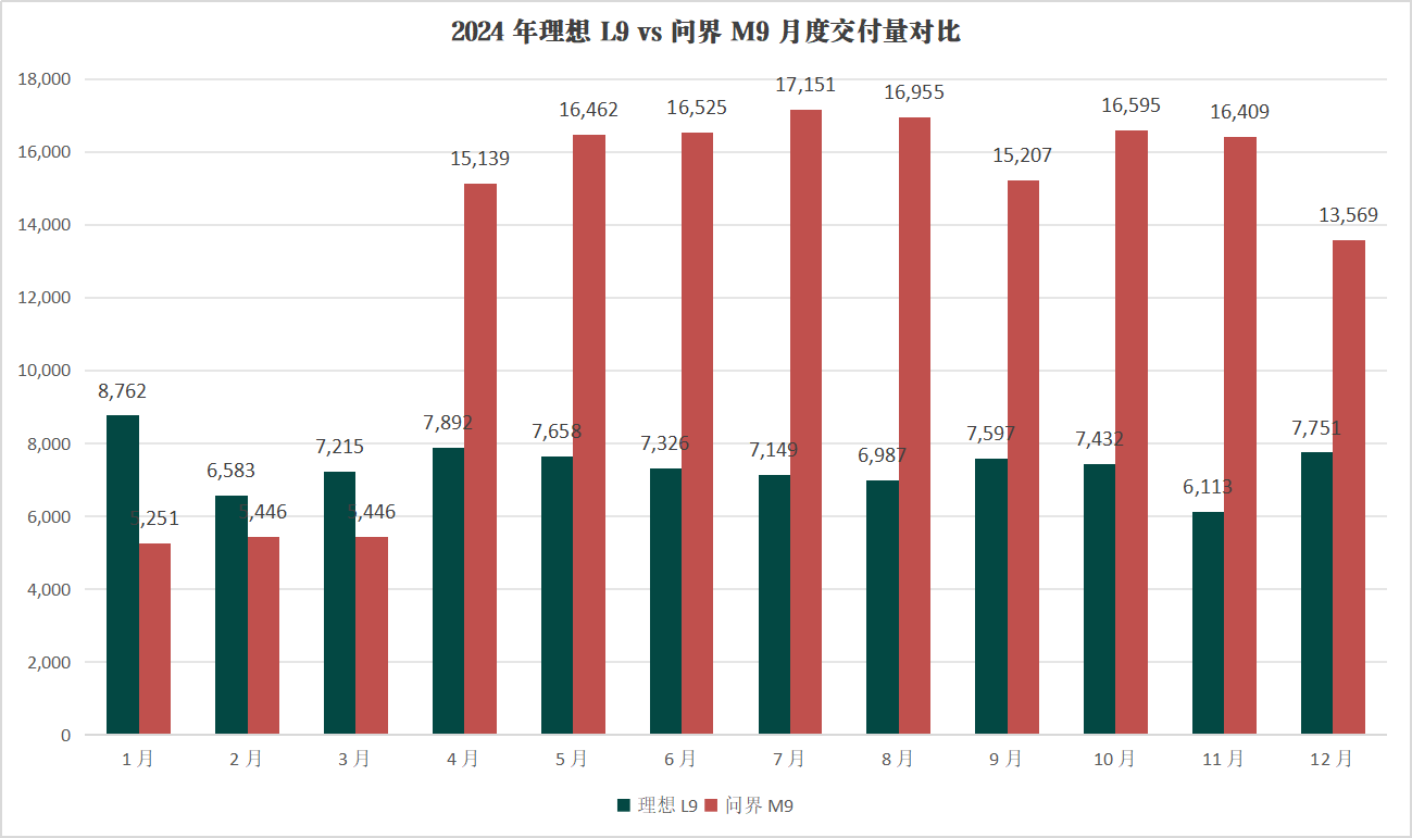 ▲2024 年理想L9 vs 问界M9月度交付量对比