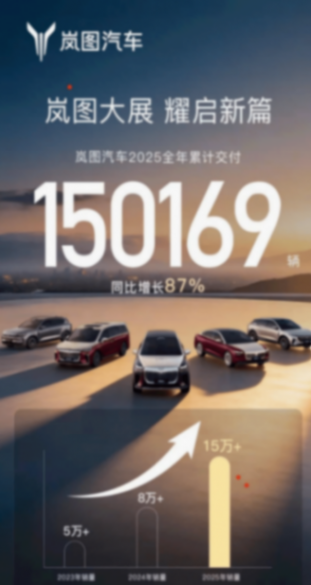 回首2025年,岚图汽车用销量、技术、市场、用户、未来等多维度的突破,为中国高端新能源汽车发展树立了全新标杆。在"十四五"收官之年,岚图汽车不仅实现了自身高质量发展,更以"央国企高端新能源第一品牌"的定位,为中国新能源汽车产业的全球竞争力提升作出了重要贡献。