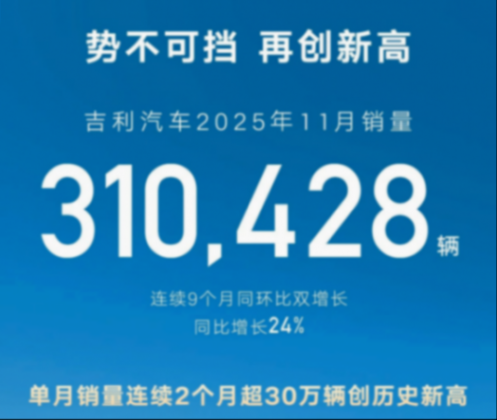 从数据来看,吉利2026年的销量目标似乎非常保守。毕竟2025年的销量已经突破300万辆,同比增长39%。其中新能源车销量超过168万辆,同比增长高达90%。