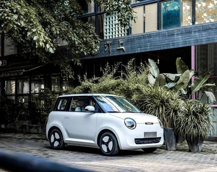 外观方面,作为一款定位年轻、个性化的微型电动车,其外观设计极具辨识度。前脸,最具特色的是其圆形大灯组,搭配下方大面积留白的设计,营造出一种简约呆萌的视觉效果。侧面,采用悬浮式车顶设计,即车顶(A柱/C柱以上部分)与车身主体采用不同颜色,形成鲜明的撞色效果,增加时尚感和活力。车尾,呼应前脸,尾灯也多为方正或圆形设计,造型简洁可爱。此外,还提供了超过100种个性化改装方案,满足不同消费者的多样需求。其长宽高分别为3000/1510/1630 mm,轴距为1953mm,大于宏光MINIEV(2920/1493/1621 mm,轴距为1940mm),后排头部和腿部空间更优。