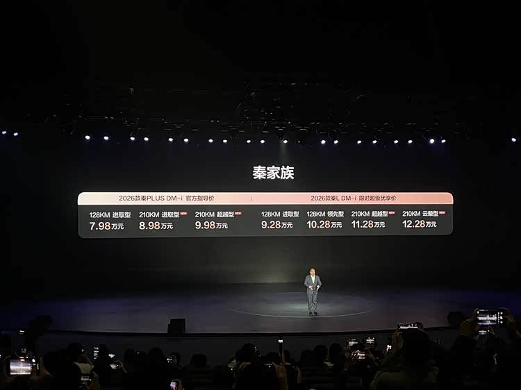 2026年1月8日,比亚迪2026款秦PLUS DM-i 210km长续航版正式上市,新车主要升级电池容量和纯电续航,电池容量25.28度,CLTC纯电续航为210公里。秦PLUS DM-i 210km长续航版共推出2款车型,官方售价8.98万至9.98万元。