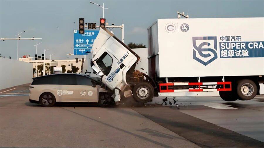 在的上市宣传中,一段碰撞测试视频引发了行业内外广泛关注。画面中,理想i8与一辆空载卡车正面对撞,卡车驾驶室与底盘分离、后轮离地,视觉冲击力极强。理想试图以此证明其车辆的安全性。