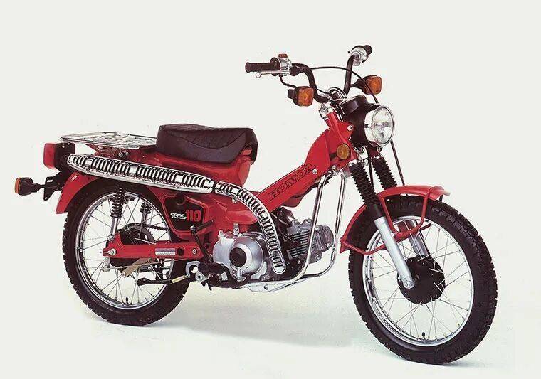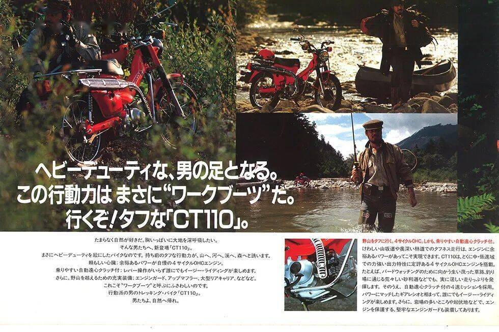 1980年,本田推出了CT110 TRAIL 110,发动机排量提升至105cc,配备了自动离心式四速变速箱。
