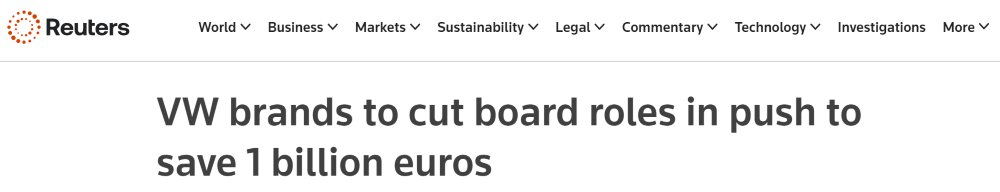 ▲路透社报道大众汽车核心品牌集团拟削减董事会席位