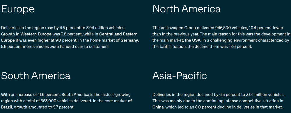 ▲大众汽车集团2025年分区域销量表现