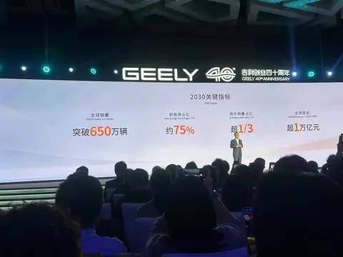 1月22日,吉利控股集团(以下简称“吉利控股”)在北京举行2030战略解析会,吉利控股集团CEO安聪慧发布了“一个吉利,全面领先”的2030战略目标:实现全球总销量突破650万辆(乘用车+商用车),营收超1万亿元,跻身全球车企销量前五,其中新能源销量占比约75%,海外销量占比超三分之一,开发覆盖A到E级车型的全球顶级的新能源架构,基于全新架构的平均单车型研发周期和综合成本下降30%以上。