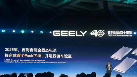 吉利汽车集团CEO淦家阅表示,由吉利汽车自研的全固态电池将在2026年完成首个Pack下线,并进行装车验证。
