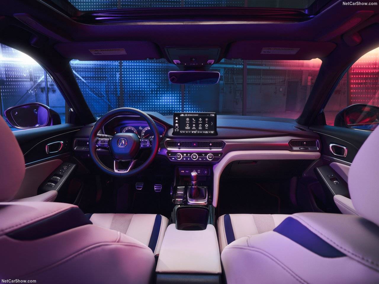 车内,讴歌给新Integra用上了更时尚的氛围灯和新的液晶仪表样式,同时引入了ADX上受到好评的蓝色皮革镶嵌在座椅,黄色缝线的大量运用也增加了战斗气息。标配前排座椅加热让Integra有比思域更好的舒适配置,内饰的用料质感也优于本田车型,但对于熟悉思域的朋友来说,它在设计上并没有突破原有基础造型,9英寸触控屏也很难带动年轻群体的热情。