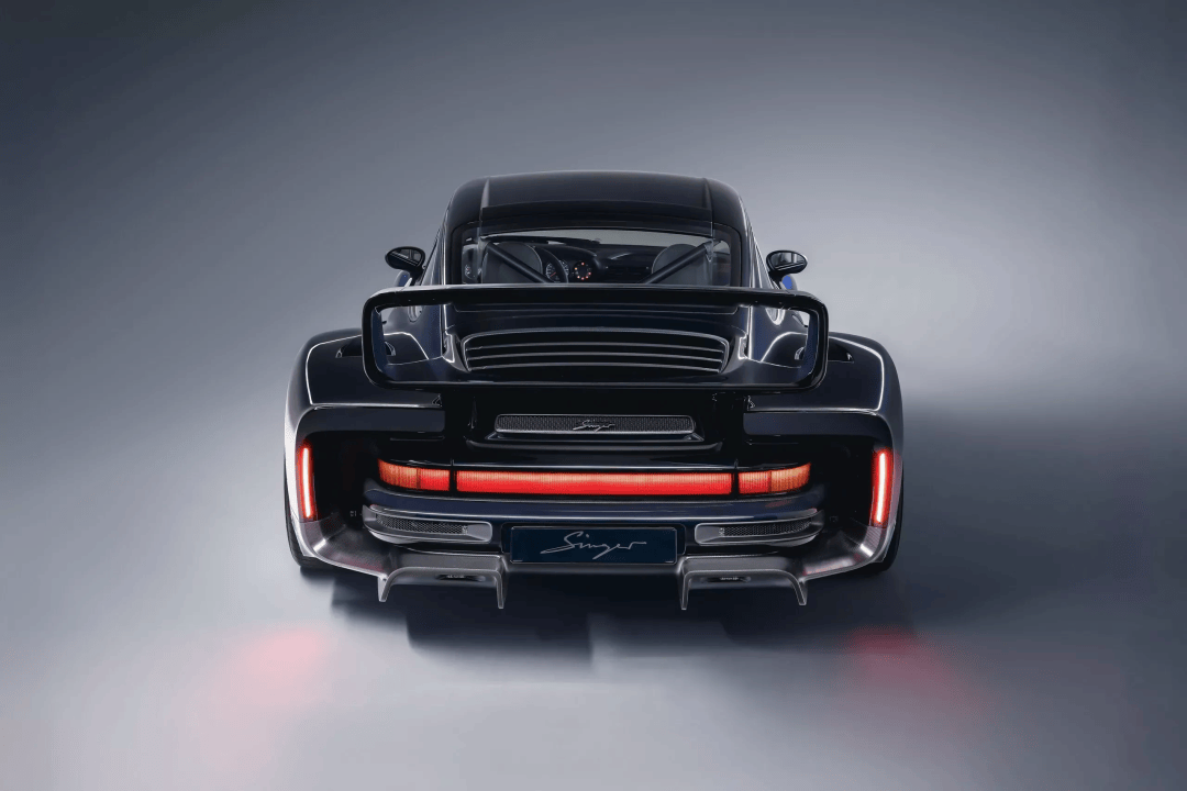 整车外观设计极具视觉冲击力:车身换装全新轻量化碳纤维车身覆盖件,前脸经过全新设计,配备大尺寸前扰流板与定制化发动机盖;Singer还为其加装了宽大的轮眉,并打造出类长尾式的车尾造型,排气管从后扩散器两侧直接探出。