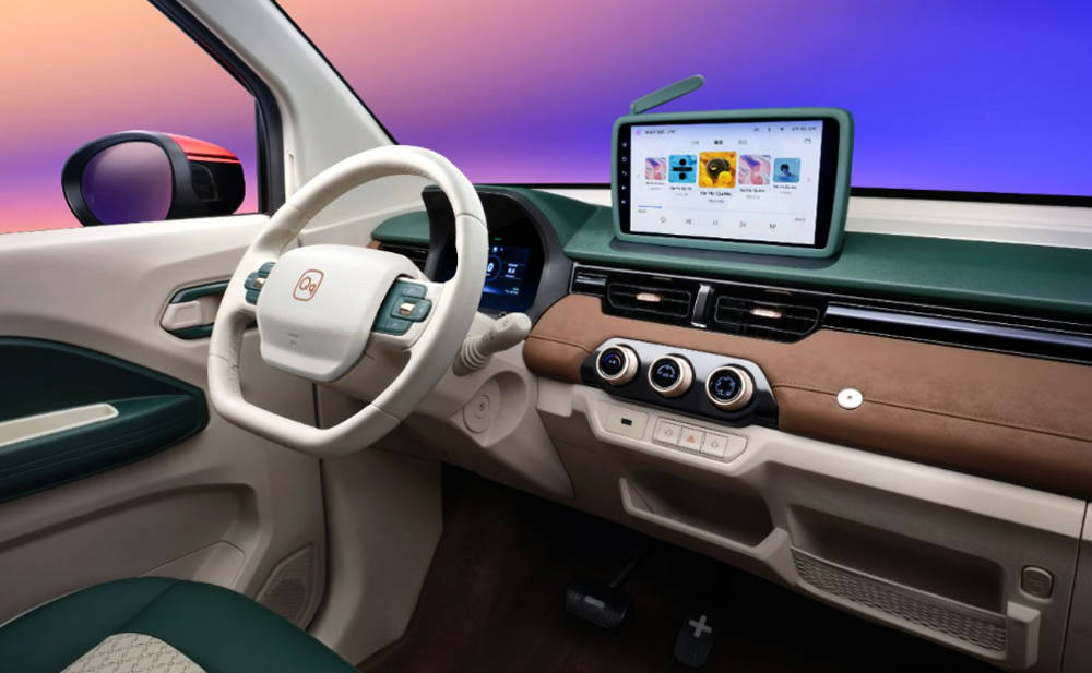 2026款QQ冰淇淋的内饰布局比较简单,扁平的空调出风口,舒适性不错的座椅,平底式多功能方向盘以及丰富的储物槽等,既突出实用性也注重时尚感。配置方面也没有花里胡哨的噱头,标配上坡辅助、倒车影像、后驻车雷达等。