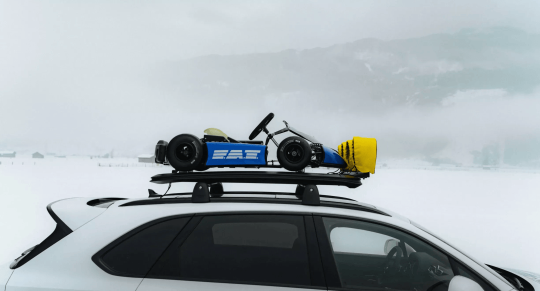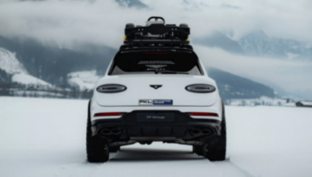 车身顶部,添越X概念车配备了车顶射灯,还增设了储物空间,足以支撑远离铺装路面的长途越野行程;车顶甚至搭载了一台小型电动卡丁车,专为冰面竞速体验打造。