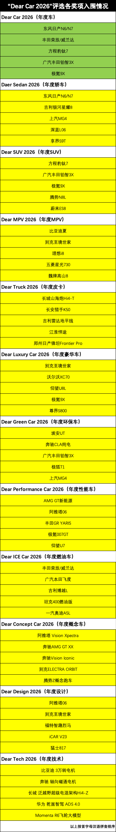 现在就把“Dear Car 2026”各奖项入围的情况跟大家报告如下。