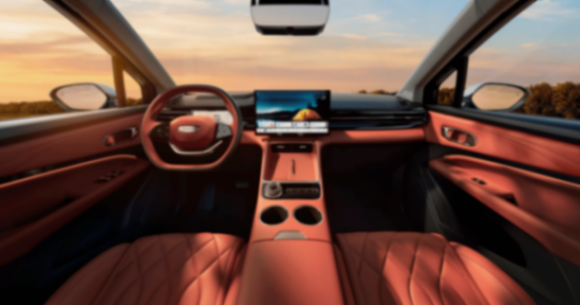 内饰部分,吉利博越REV整体风格比较简约,配备8.8英寸液晶仪表、14.6英寸悬浮式中控屏、怀挡式电子挡杆。悬浮式中央扶手台设上下双层储物格,上层支持50瓦风冷无线快充。