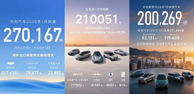 2025年自主销冠比亚迪,2026开年就被吉利反超,头部三强迎来新竞争格局。
