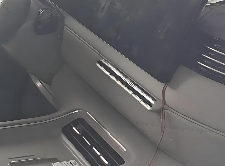 从图片中可以看到车辆采用了双联屏,是较为常规的设计;座椅填充物很是饱满,支撑性和包裹性应当都能达到理想标准;在扶手岛可以看到一排实体按键,这是一个看似不够前卫但很有意义的设计;因为将过多功能集成到屏幕里,在实际操作中的体验只能说见仁见智,是否有利于提高操作便利性和保证行车安全也是值得商榷的,所以即将实施的新标准会对车辆部分基础功能要求必须配备物理操纵杆或者按键。