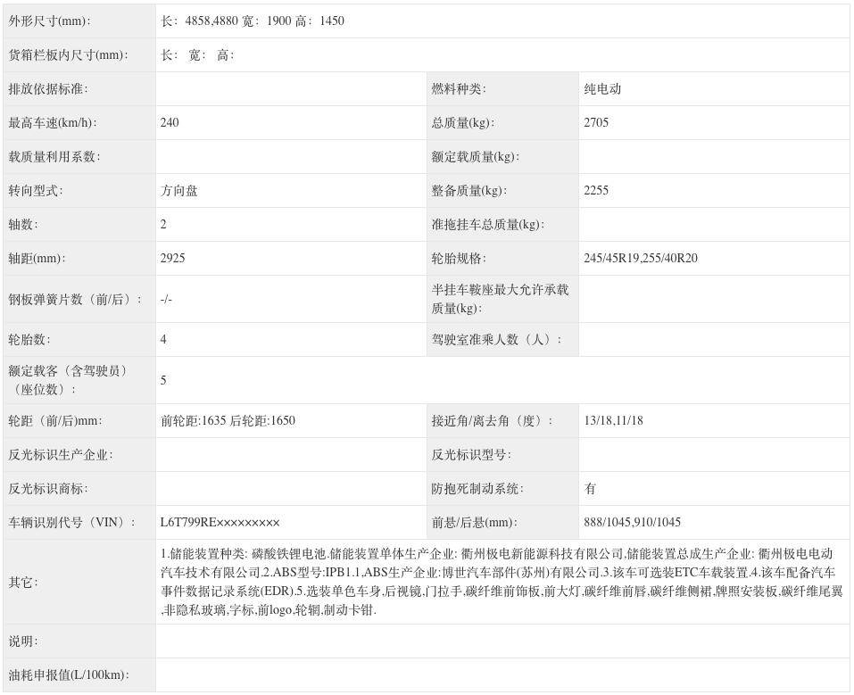 尺寸方面,新款极氪007长宽高分别为4858(4880)/1900/1450mm,轴距为2925mm。作为对比,现款极氪007长宽高分别为4865/1900/1450mm,轴距为2928mm。相比之下,新车较现款极氪007车长减小了7mm,轴距则减小了3mm。另外,申报信息显示,新车提供19英寸和20英寸轮圈,轮胎规格为245/45 R19,255/40 R20。