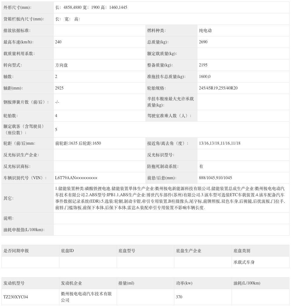 尺寸方面,新车长宽高分别为4858(4880)/1900/1460(1445)mm,轴距为2925mm。申报信息显示,新车同样提供19英寸和20英寸轮圈,轮胎规格为245/45 R19,255/40 R20。