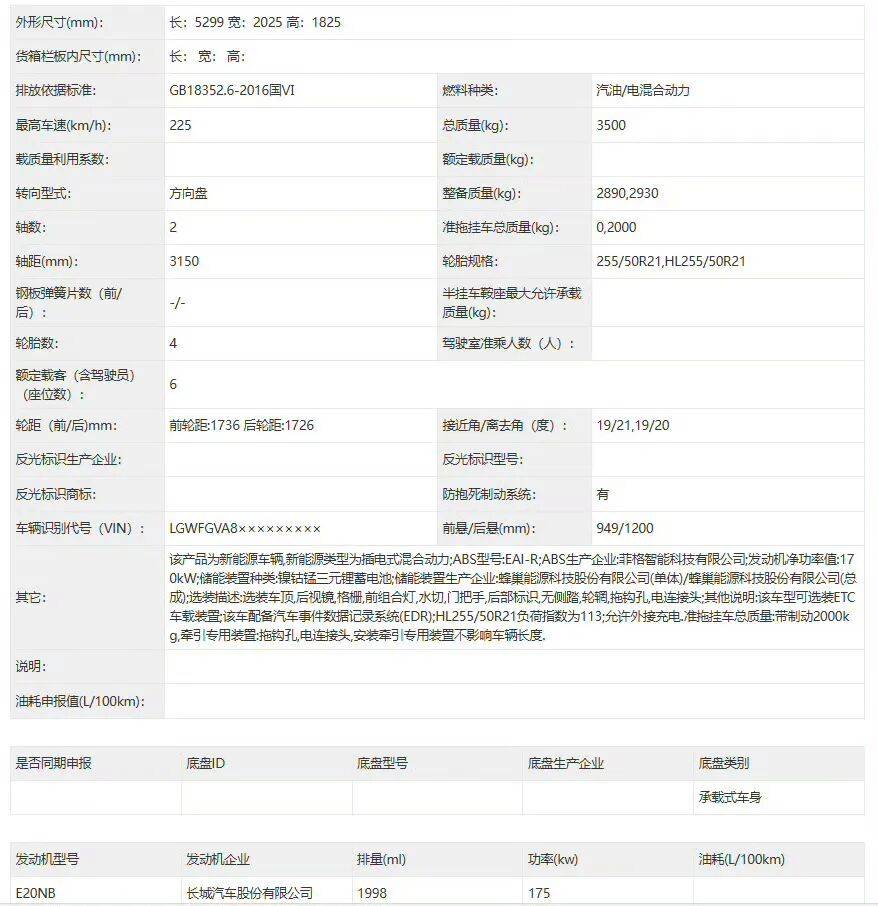 再看技术层面,它搭载超级Hi4插混动力,配备2.0T发动机+双电机+4挡DHT变速箱,采用800V架构,有240km、363km两个纯电续航配置。此外,还有双腔空悬+CDC减振器,后轮支持±10°主动转向功能,带蟹行模式,这些均为长城自研。这么大一台车,它实现最小转弯半径仅5.1米。