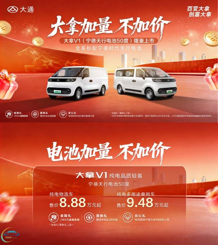 2月25日,大通旗下明星车型大拿V1(宁德天行电池50度)正式上市,在保持价格不变的前提下,新款车型从电控、续航到质保政策全方位升级,更给出了21分钟快充系统,为策马奔腾的创富人群提供了更高效的选择。