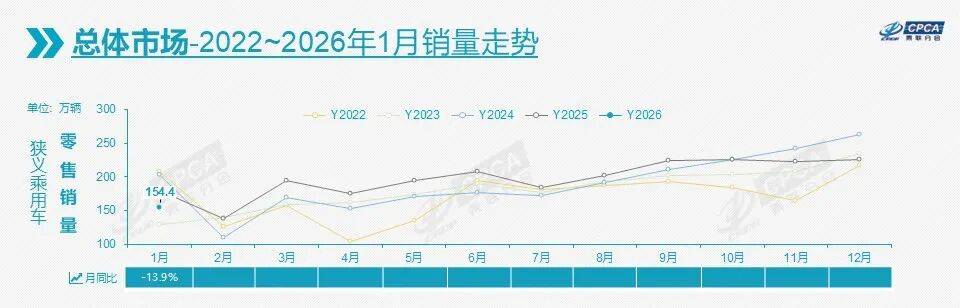 全国乘用车市场1月销量数据出炉了。如各位感知,冷风瑟瑟,1月全国乘用车零售154.4万辆,同比下降13.9%。