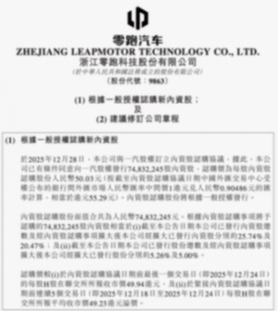 为什么一汽集团可以并表零跑汽车?2025年12月,零跑汽车发布公告,一汽股权将以内资股增发方式入股零跑汽车,成为其战略股东,通过资本融合的方式促进两大汽车集团的战略协同。一汽股权以每股人民币50.03元(相当于55.29元港元)的价格认购零跑汽车近7500万股内资股,认购股份总数为74,832,245股,总金额为人民币37.44亿元。认购完成后,一汽股权持有的内资股占零跑汽车经扩大后总股份14.97亿股的约5.00%,同时占经扩大后内资股总数约3.66亿股的约20.47%,成为重要战略股东。