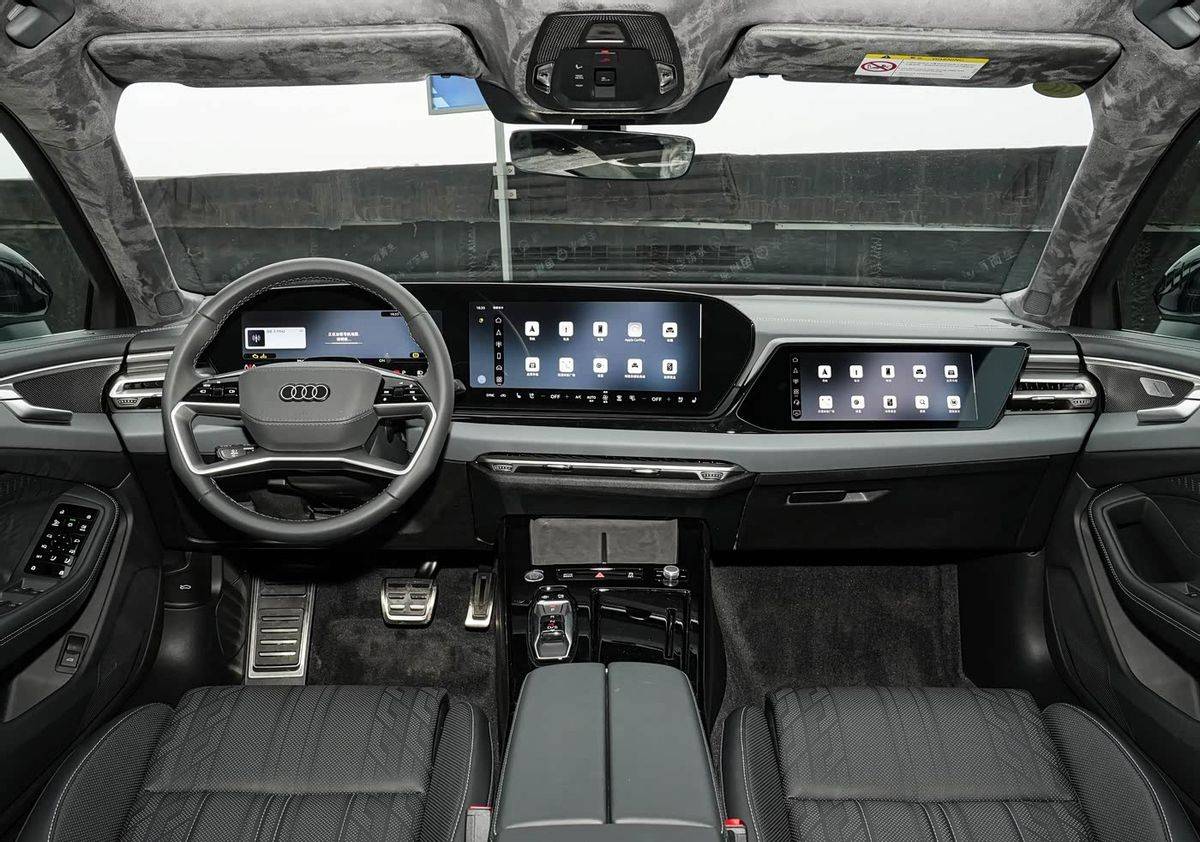 内饰部分,全新奥迪A6L配备了11.9英寸的仪表屏、14.5英寸的中控屏以及10.9英寸的副驾娱乐屏。其中,主驾屏和中控屏采用环抱式设计,副驾屏则带有电子防窥功能,以减少对驾驶员的干扰。抬头显示系统能投射辅助驾驶等关键信息。车机系统内置了高德导航、微信、爱奇艺等应用,支持CarPlay连接,并配有响应速度较快的语音助手。中控台下方的无线充电区域可同时为两部手机充电。