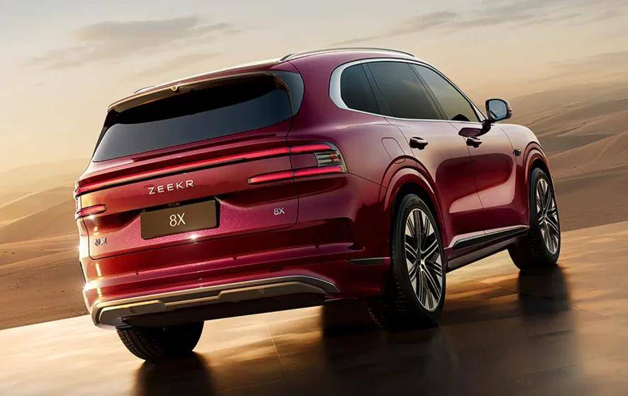 最后说说极氪8X,这车和前面几位不太一样,它是插混,而且是偏性能取向的插混。预计2026年上半年上市,顶配价格线可能摸到50万。极氪8X基于SEA-S超级电混架构打造,车身尺寸5100×1998×1780mm,轴距3069mm,定位中大型SUV。外观和极氪9X很像,但线条更柔和、更运动。