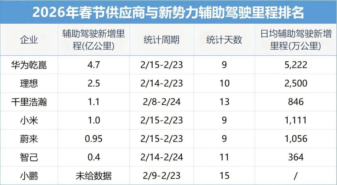 图丨2026年春节,华为乾崑辅助驾驶总里程4.7亿公里,人均382公里