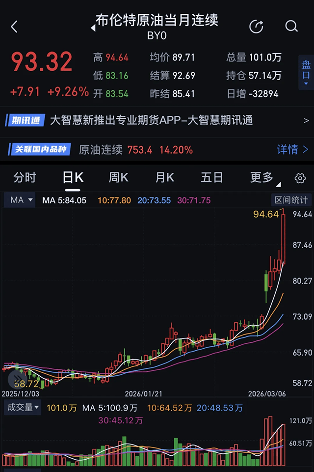 霍尔木兹海峡承担全球超20%的原油运输与近三分之一的液化天然气出口。截至3月8日,WTI原油收90.90美元/桶,布伦特原油收92.69美元/桶,双双创历史最大单周涨幅。